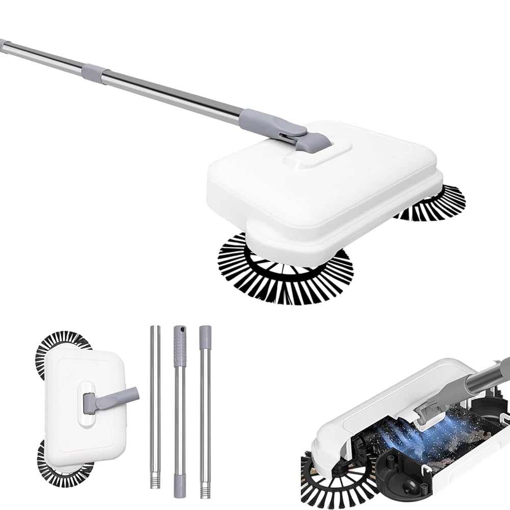 - 【2-in-1 360° Rotating Hand Push Sweeper】: Floor Sweeper adopts a two-in-one sweeping and mopping design. The extended double-sided brush can clean close to the corners; the soft dense-bristled roller brush can clean without missing a beat; the fiber water-locking mop can absorb water and remove stains. It can be used both wet and dry, making cleaning difficult. Dust leakage.