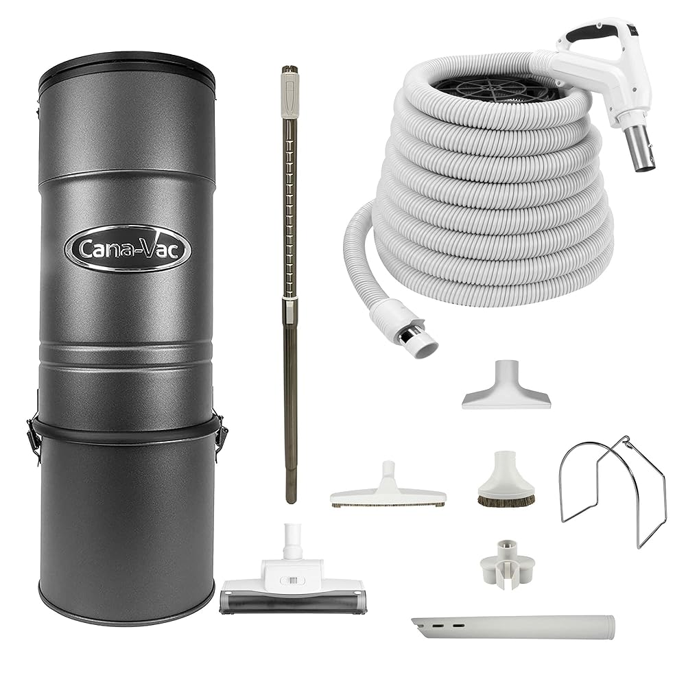 CanaVac E-425 Ethos Series Central Vacuum Cleaner – Reliable FLOW-THRU MOTOR Up to 3,500 Sq Ft.- with The LS Rug and Floor Package