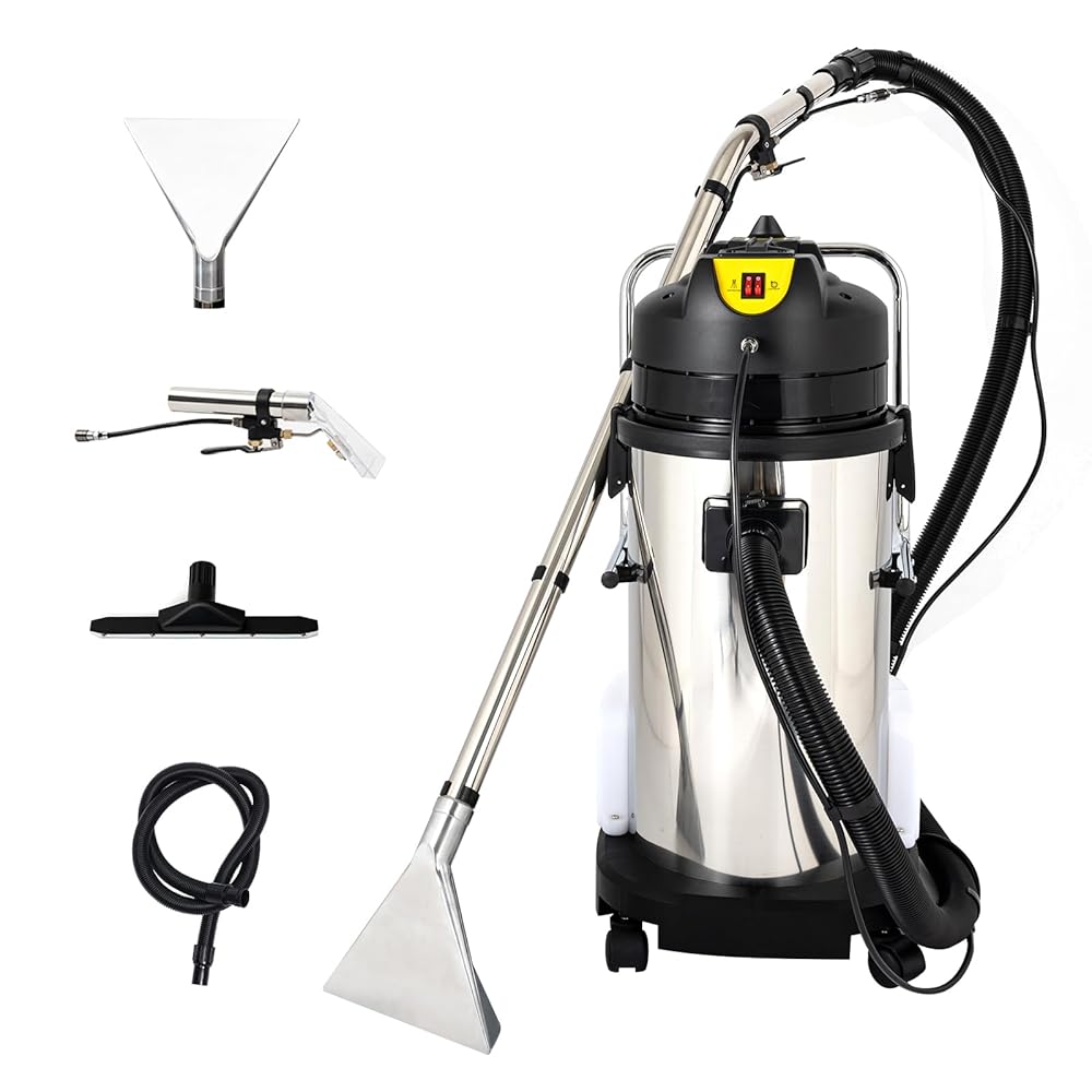 - Professional Cleaning : The commercial carpet cleaner machine is equipped with 6 professional suction tools, which can be applied to different cleaning scenarios for more efficient cleaning, such as sofa cleaning, carpet cleaning, liquid stains cleaning on tiles, and dust cleaning in crevices and corners. The long enough power cord(22.97ft), flexible soft pipe(8.63ft), and large sucker(3.94ft) provide you with more usage position.
