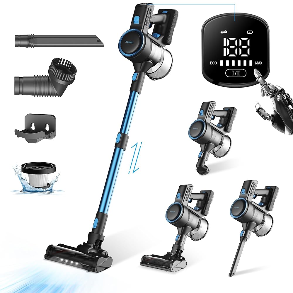 Cordless Vacuum Cleaner, Display Touchscreen, stick vacuum cordless rechargeable with 2200mAh Detachable Battery, Up to 45 Minutes, Lightweight, and Versatile for Carpet, Hard…
