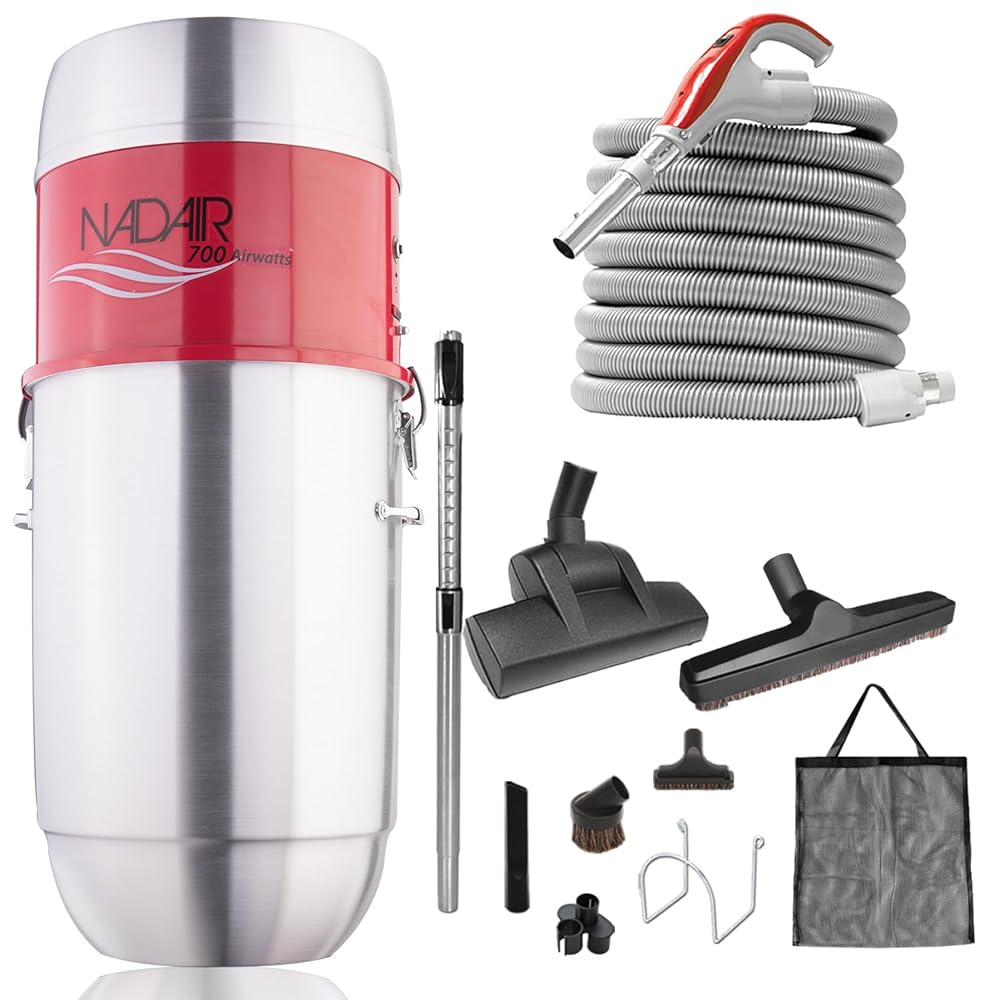 Nadair 700 AW Heavy Duty Central Vacuum System, Hybrid Filtration (with or Without Disposable Bags), 32L or 8.5 Gal, with 30ft Deluxe Plus Accessory Kit Included, Silver