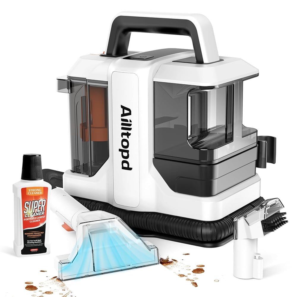 Portable Carpet & Upholstery Spot Cleaner, Powerful Suction&Deep Stain Cleaning Carpet Cleaner Machine for Area Rugs, Carpet, Couch, Car, Pets, with Dual Size Brushhead and…