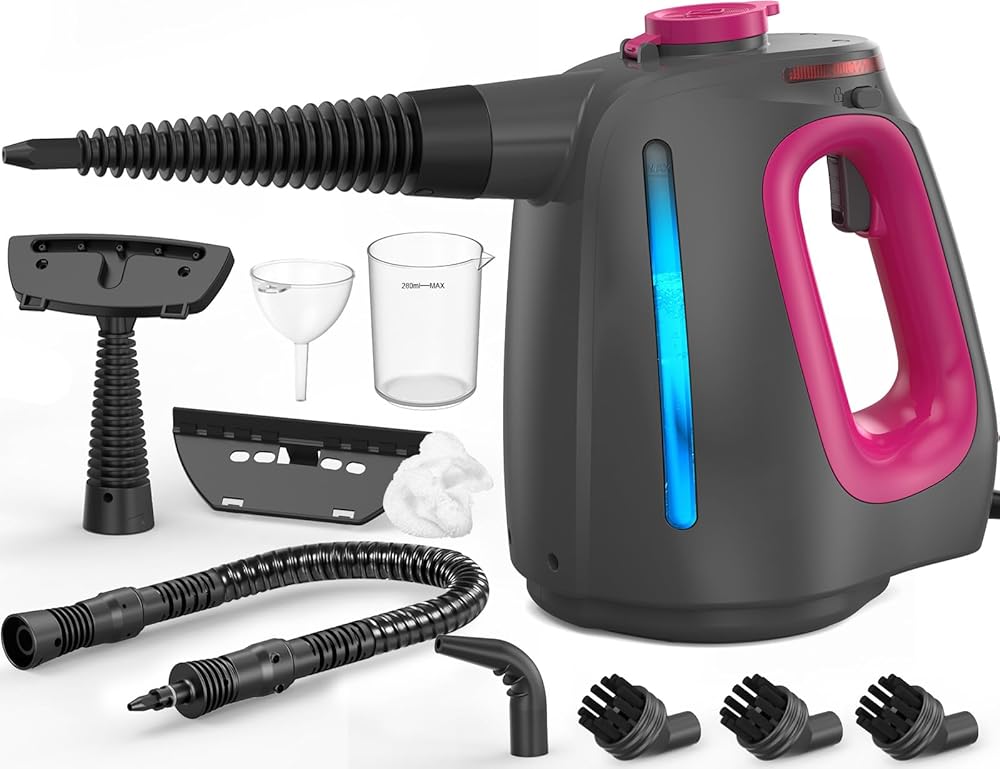 Steam Cleaner, 1350W Powerful Multipurpose Steamer for Cleaning, Fast Heating Handheld Steam Cleaner with Continuous Steam Lock, 11 in 1 Steam Cleaner for Home, Grout, Couch,…
