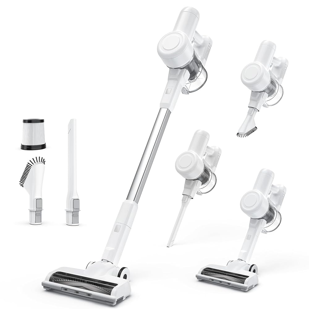 Sweetcrispy Stick Cordless Vacuum Cleaner Electric Rechargeable Vac Handheld with LED, Up to 45 Minutes, Powerful Suction, Versatile for Carpet, Hard Floor, Pet Hair, White